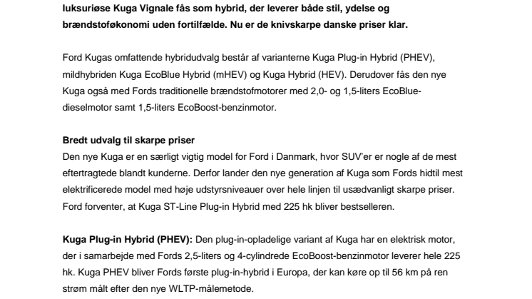 Læs meget mere om den nye Ford Kuga i Fords pressekit og se alle priserne på Fords hjemmeside.