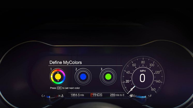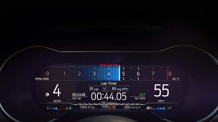 Den nye Mustang tilbyder uendelige mange tilpasningsmuligheder. Den helt nye 12 tommers LCD-skærm i instrumentpanelet giver mulighed for nem tilpasning og tre separate visninger.