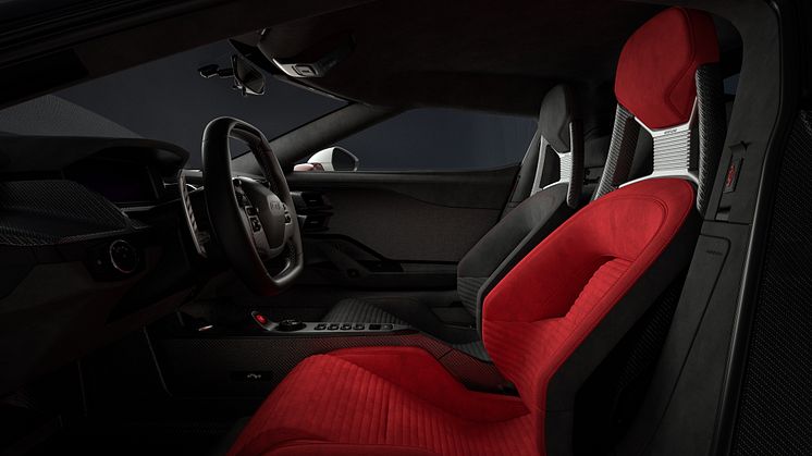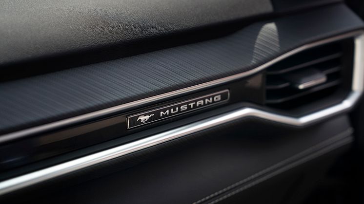 Indvendigt går det blå og røde tema igen i bilens kulfibersæder, mens bilens instrumentpanel er beklædt med Ebony-læder. Fords kunder kan selv vælge, hvilken af de to farver de foretrækker.