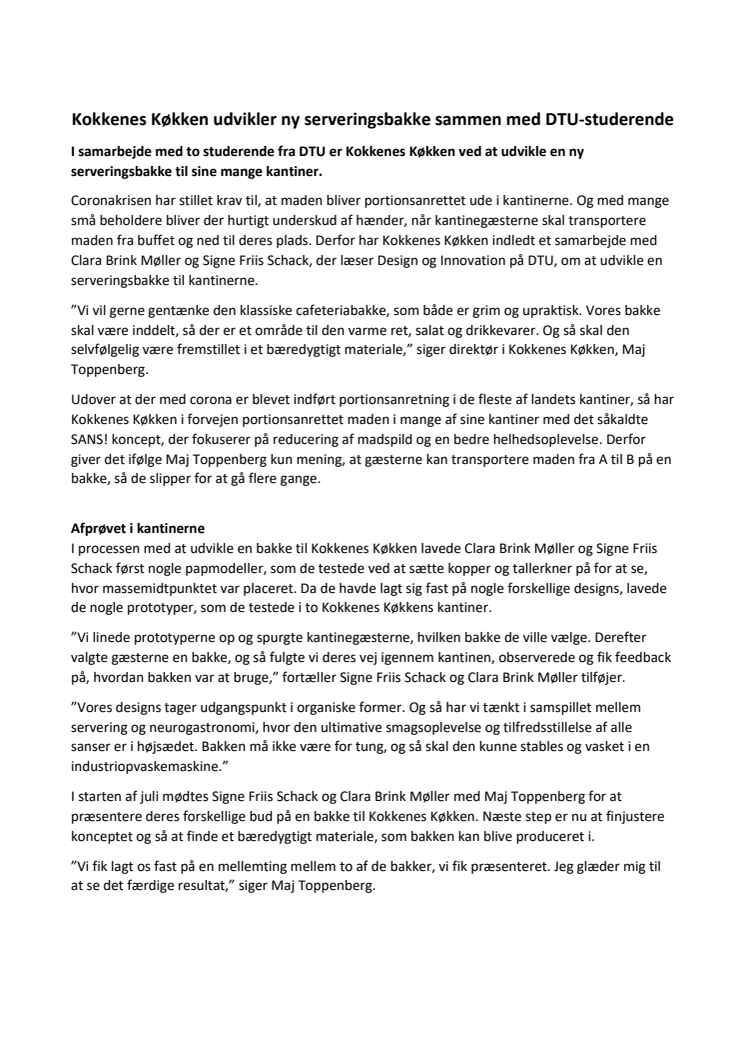 Kokkenes Køkken udvikler ny serveringsbakke sammen med DTU-studerende