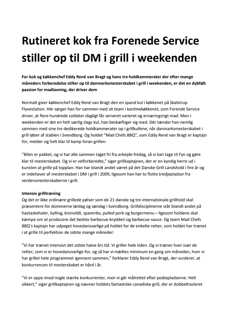Rutineret kok fra Forenede Service stiller op til DM i grill i weekenden