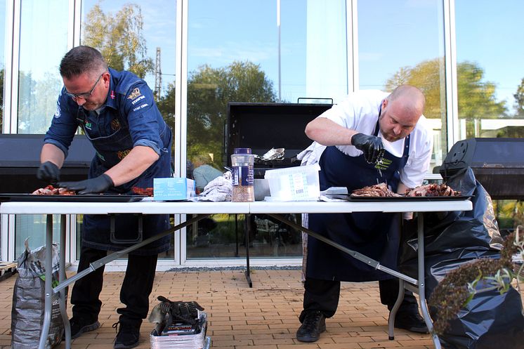 Der er tale om ægte passion og indlevelse, når flere gange vinder af diverse nationale og internationale grillkonkurrencer Eddy René van Bragt (til venstre i billedet) håndterer kødet sammen med sin kokkekollega fra Kokkens Køkken Teddy Rosè Lose.