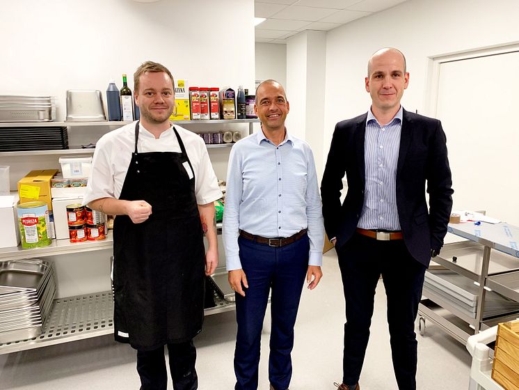 Sammen med resten af køkkenteamet står køkkenchef Mikkel Nielsen klar med bæredygtig servering for mere end 200 medarbejdere den 15. november.