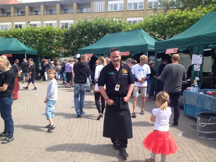 En træt holdkaptajn Eddy René van Bragt har netop afleveret sidste ret søndag eftermiddag - pulled pork - til bedømmelse hos dommerne.