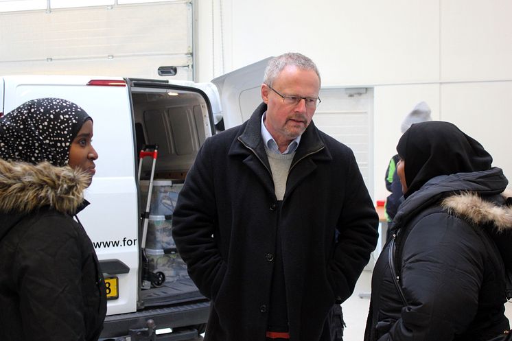 Jørgen Gaarde (S), som er borgmester i Skanderborg, førte mange samtaler med de 15 flygtninge, der var med rundt på virksomhedsbesøget hos lokale virksomheder.