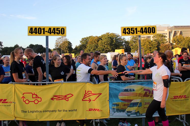 Thomas Brandi får depechen af sin holdkammerat og løber ud på ruten i DHL-stafetten.