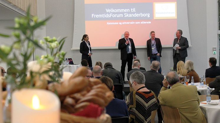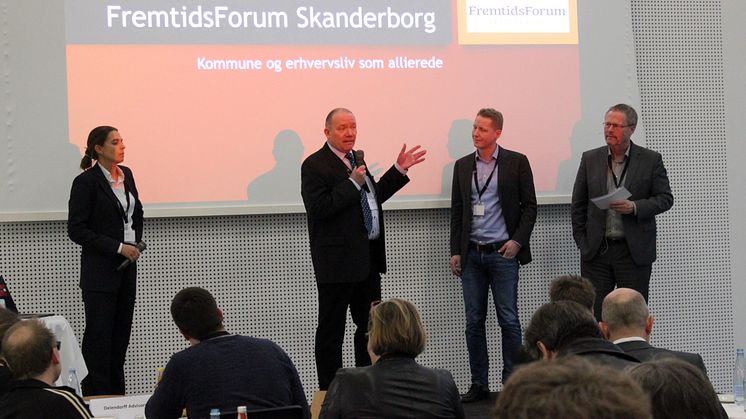 Udover gennemgangen af konkrete erhvervscases fra Skanderborg-egnen og en engageret dialog om hvordan det gode samarbejde mellem kommunen og erhvervslivet skabes og udbygges, blev forsamlingen i ”FremtidsForum Skanderborg” også beriget af et oplæg fra tidligere DI-direktør Lars Goldschmidt, som gav tilhørerne et kvalificeret bud på, hvordan virksomheder og kommune i fælleskab kan styrke samarbejdet.