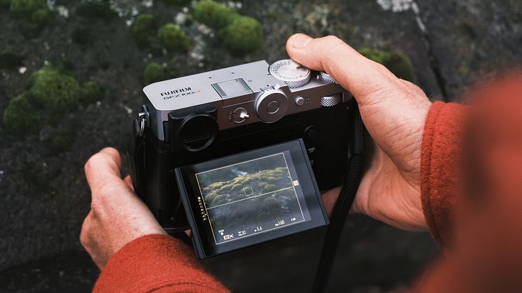 Det nye FUJIFILM GFX100RF bliver det letteste og mindste kamera i GFX-serien nogensinde, og den første model med fast objektiv. Med en billedsensor der er 70% større end en full frame sensor er der lagt op til billeder i ekstrem høj opløsning, med imponerende tonalitet og enestående garvegengivelse. GFX100RF kombinerer FUJIFILMs årelange fotografiske arv med den nyeste teknologi i et unikt og sofistikeret design for at give fotografen en unik brugeroplevelse og exceptionel performance, hvad enten det gælder hverdagsbilleder eller professionelle reportagebilleder. Objektivets brændvidde på 35mm (modsvarende 28mm i 35mm formatet) giver en skøn alsidighed der passer perfekt til et utal af motiver typer så som landskabsbilleder, rejsebilleder, street fotos og portrætter.