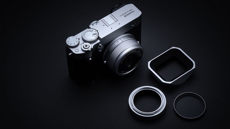 Når man køber det nye GFX100RF medfølger der flere superlækre og funktionelle tilbehørsdele så som lækker kamera-rem, modlysblænde og adapterring fræset ud i aluminium plus et beskyttelsesfilter PRF-49. Med filter og adapterring monteret sammen er kameraet også vejrforseglet og beskyttet mod let regn og støv.