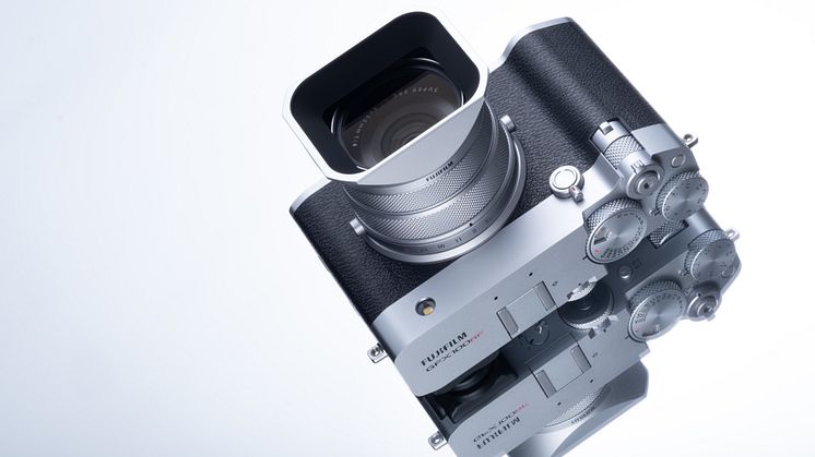 GFX100RF har et fast objektiv med en brændvidde på 35mm (modsvarende 28mm i 35mm formatet) med en maksimal blænde på f/4. Denne alsidige brændvidde gør kameraet mere universelt og passer perfekt til et utal af motiver fra landskab, rejsefotos, street fotos til portrætter og reportage. Ved at vælge et fast objektiv med centrallukker blev det muligt at mindske kameraet backfocus og optimere placeringen af objektivet og kamerakomponenter for derved at opnå et fantastisk kompakt kamera i sin klasse.