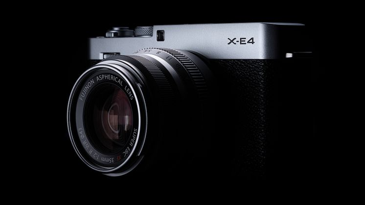 Med en vægt på kun 364 gram og et design inspireret fra den populære X100- serie er X-E4 et kamera der er let at håndtere endda med kun en hånd. Top og bundpladerne er konstrueret i massiv magnesium der er poleret op for at give kameraet et look som et klassisk analog kamera.