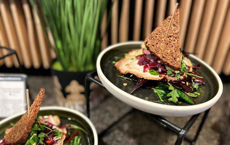 Frokost: Bygotto, Pokébowl m. hvedekerner, vegetarisk smørrebrød, samosa, grovdeller, tyrkiske pide bao og burger og meget meget mere