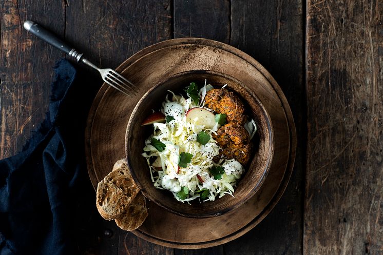 Fuldkorns fishcakes, kartoffelsalat med fuldkornsknas og kikærtebøffer eller måske en karryret med kylling? Fuldkornspartnerskabet har udviklet en række opskrifter, der er gjort klimavenlige ved, at indeholde mange grøntsager og kornprodukter, som har et lavere CO2 aftryk end for eksempel kød.