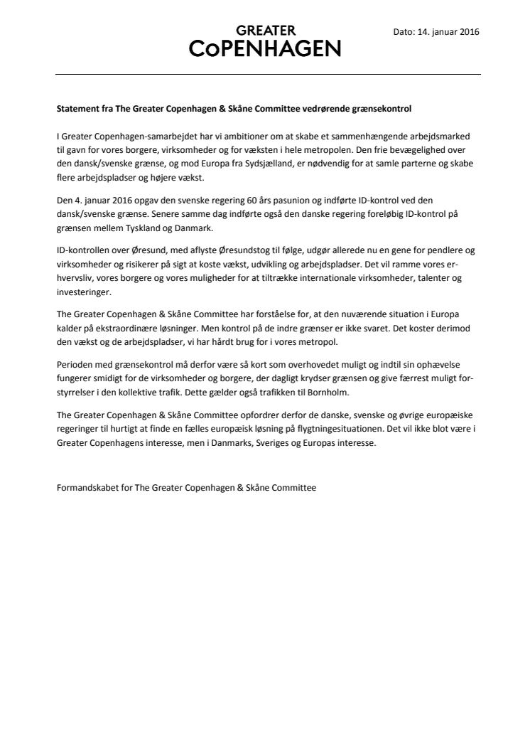 Fælles udtalelse om ID-kontrol fra Greater Copenhagen & Skåne Committees bestyrelse