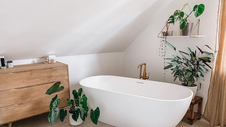 ”Planter giver liv til alle rum, også badeværelset. Hvis du har meget badeværelsesplads, kan du overveje en hel plantevæg, men ellers kan mindre sagtens gøre det. Vil du gerne spare hyldeplads, kan du for eksempel hænge dem fra loftet eller indrette med små planter, der ikke fylder så meget. Husk at tænke over mængden af naturligt lys på dit badeværelse, så du kan vælge de rigtige planter,” siger Marianne Fryland.