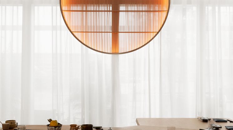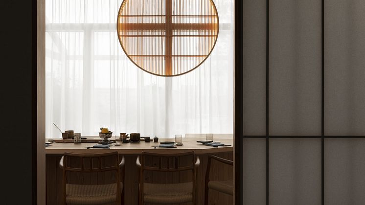 Lampen var den første ting Mads udvalgte til restauranten, da han kom hjem, og det er den første ting han tænker på, da han bliver spurgt ind til sin yndlingsting i restauranten. Den er af dansk design, men produceret i Japan. Ligesom resten af restaurantens mange små og store elementer, der enten er håndlavet til restauranten eller fundet på Mads’ mange rejser til Japan. Selv den lille klokke ved døren, der som han selv fortæller, giver den fineste lille klang, når gæsterne træder ind i restauranten, har han selv fundet i Tokyo. ”Det er svært at udvælge ét yndlingselement, fordi der er lagt så mange tanker i alting,” fortæller han.
