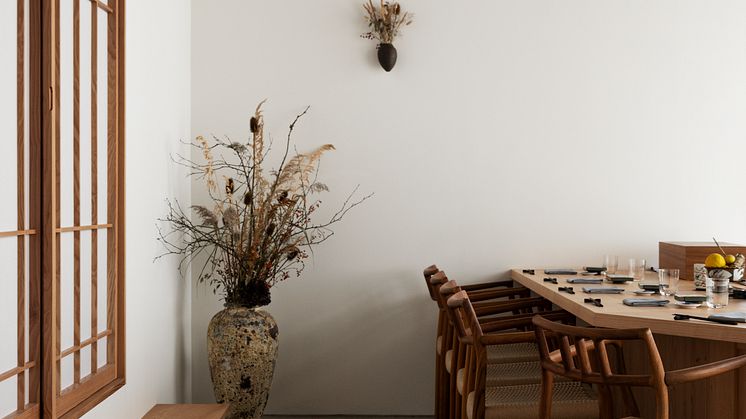 ”Maden vi laver, er på ingen måde dansk, så det er egentlig mest i vores indretningsdesign, at der er noget dansk indover.” Indretningen trækker tankerne tilbage til japansk og dansk design i 60’erne og 70’erne, der som Mads forklarer, har mange ligheder, når det kommer til arkitektur og rene linjer. Især lægger han vægt på det gode håndværk og design, som også restaurantens gastronomi afspejler.