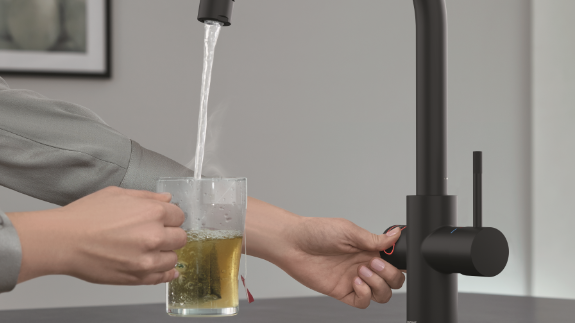 ’Matt Black’: Vandsystemerne, Blue og Red, der leverer henholdsvis filtreret, afkølet drikkevand og filtreret, kogende vand.