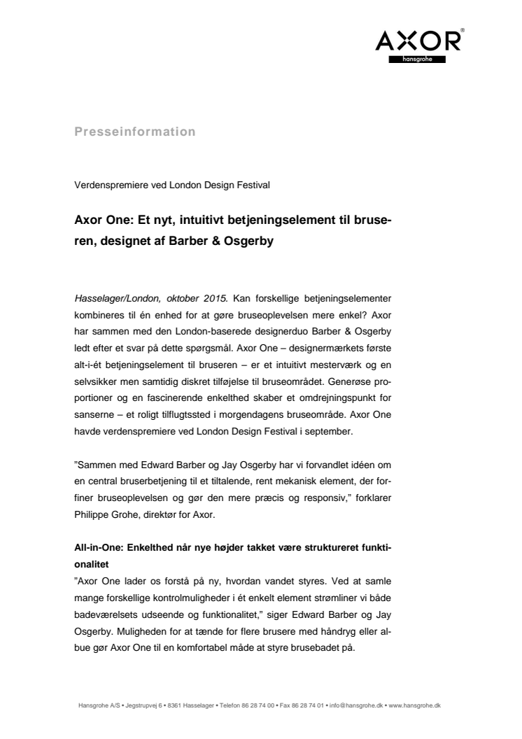 Axor præsenterer en ny vision for den industrielle designfrihed: En universel armatursokkel, som man blot kan klikke en individuelt designet tud på.