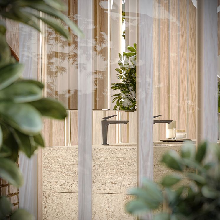 Med de bløde konturer og den sanselige form er det minimalistiske AXOR Citterio C armatur berøringsvenligt og har et gennemført æstetisk look. Den fint affasede kant hele vejen rundt på tuden og grebet er en markant detalje, der genfindes på alle produkter i kollektionen. Med sit umiskendelige men alligevel diskrete udseende passer AXOR Citterio C ind i enhver badeværelsesatmosfære.