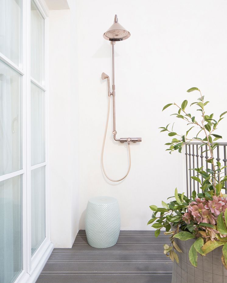 Hotel Les Bains har valgt AXOR Front Showerpipe i poleret rødguld.