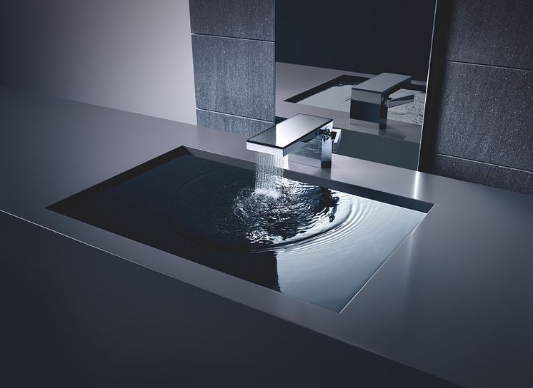 Den blide PowderRain vækker fascination. Strålemønstret gør den til den konsekvente fortsættelse af det arkitektoniske produktdesign. Fine dråber lægger sig på hænderne. Som en kokon. Et mesterværk bestående af design og funktion.