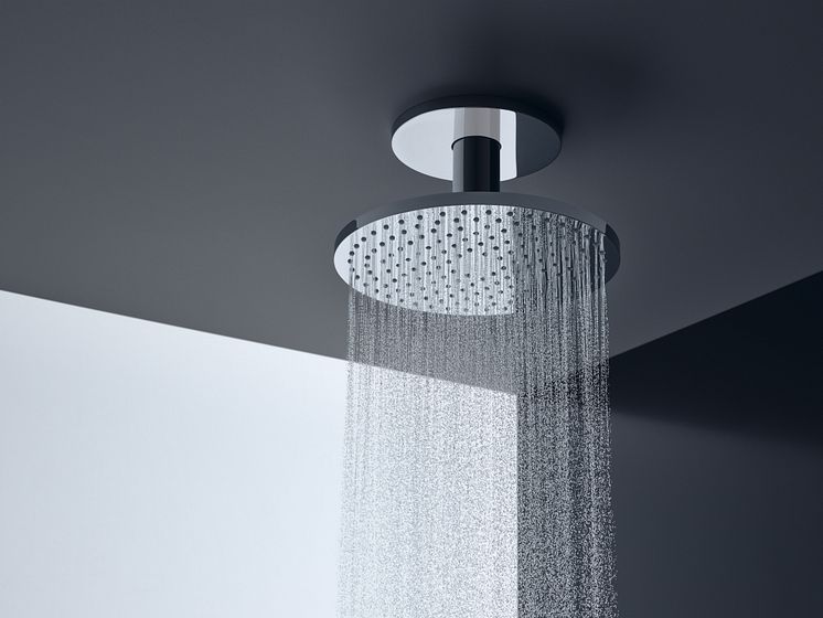 Den store PowderRain-stråle indhyller hele kroppen i bløde mikrodråber, der lægger sig på huden i stedet for at prelle af.