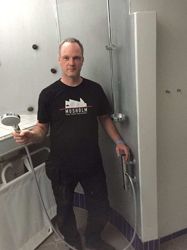 • Teknisk ansvarlig Michael Fredskov, Musholm, med hansgrohe Crometta Vario EcoSmart bruser