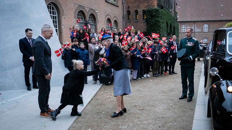 I dag besøgte Hendes Majestæt Dronningen Dansk Jødisk Museum som led i den officielle markering af 400 året for jødisk liv i Danmark. Ved ankomsten blev Majestæten præsenteret for Daniel Libeskinds nye ikoniske indgangsparti efterfulgt af en rundvisning i museets helt nye udstillinger.