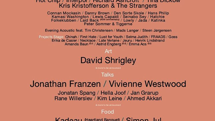 De kommende uger vil de sidste navne inden for ART, TALKS og FOOD blive offentliggjort. De vil alle kunne opleves på Heartland 2019, der finder sted fra torsdag d. 30. maj til lørdag d. 1. juni 2019.