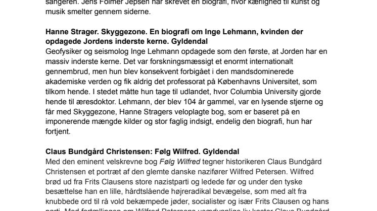 - ”Skyggezone: En biografi om Inge Lehmann, kvinden der opdagede Jordens inderste kerne” af Hanne Strager, Gyldendal