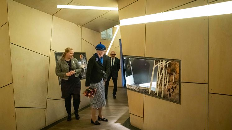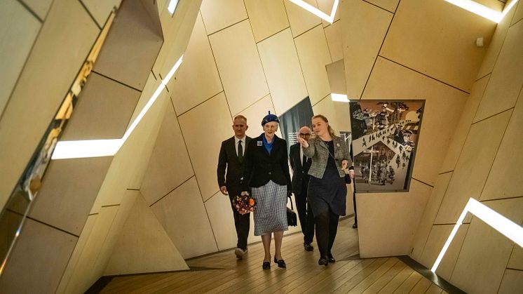 ”Det var en stor glæde at kunne vise H.M. Dronningen rundt i de nye udstillinger, som repræsenterer et helt nyt udstillingsgreb i Libeskind ikoniske arkitektur”, siger museumsdirektør Janus Møller Jensen. ”Særligt fordi der eksisterer en særlig forbindelse mellem det danske kongehus og de danske jøders historie, der går helt tilbage til 1622, da Christian 4. officielt inviterede jøder til at bo i Danmark.”