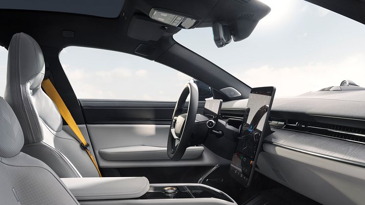 Kørepositionen i Polestar 5 er bevidst udformet med en let tilbagelænet, performanceorienteret indstilling, takket være de lavt placerede sæder og det opretstående rat, som er trukket tættere på føreren. Et 9-tommers førerdisplay er monteret direkte på den elektrisk justerbare ratstamme, hvilket sikrer, at skærmen altid er perfekt placeret i førerens synsfelt uanset indstilling. Dertil kommer et 9,5-tommers head-up display, som fuldender de førerfokuserede informationsdisplays, man finder i Polestar 5.