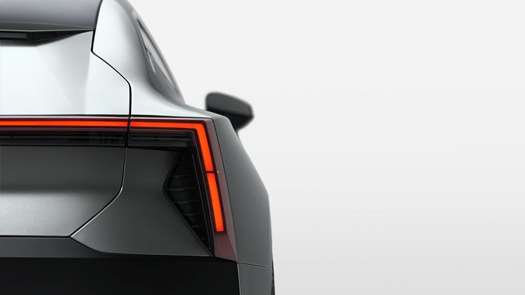 Den lave front, som prydes af SmartZone kendt fra Precept, flankeres af Polestars karakteristiske dobbelte lyssignatur med Pixel LED-teknologi som standard. Forholdet mellem hjul og motorhjelmslinje er usædvanligt tæt – en teknisk bedrift, der er muliggjort af bilens platform og det unikke design af forhjulsophænget. Langs nederste del af dørene reducerer blank sort eller Shade-indfarvet beklædning den visuelle højde på den 142 cm høje bil, mens glaskabinen følger bilens vingeformede silhuet og slanke taglinje.