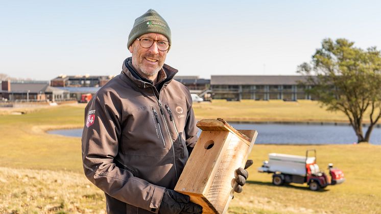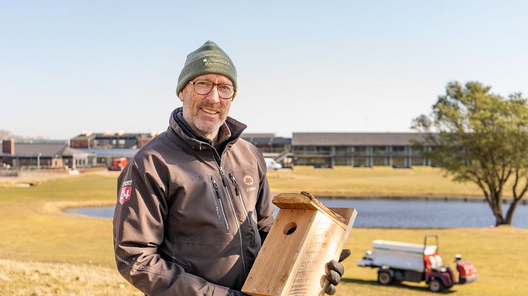 ”Nu gør vi, hvad vi kan for at stærene får gode muligheder for at finde ly på banerne, og så åbner vi jo på samme tid en ny fødekæde til dem, ved at de kan gå på jagt efter biller eller måske jage billerne ud i roughen, så det ikke går ud over vores greens.”