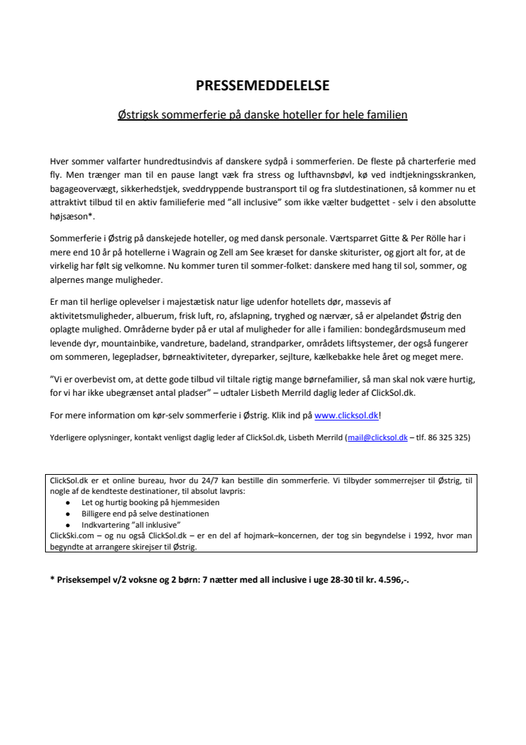 Hver sommer valfarter hundredtusindvis af danskere sydpå i sommerferien. De fleste på charterferie med fly. Men trænger man til en pause langt væk fra stress og lufthavnsbøvl, så kommer nu et attraktivt tilbud til en aktiv familieferie med ”all inclusive” som ikke vælter budgettet - selv i den absolutte højsæson*.