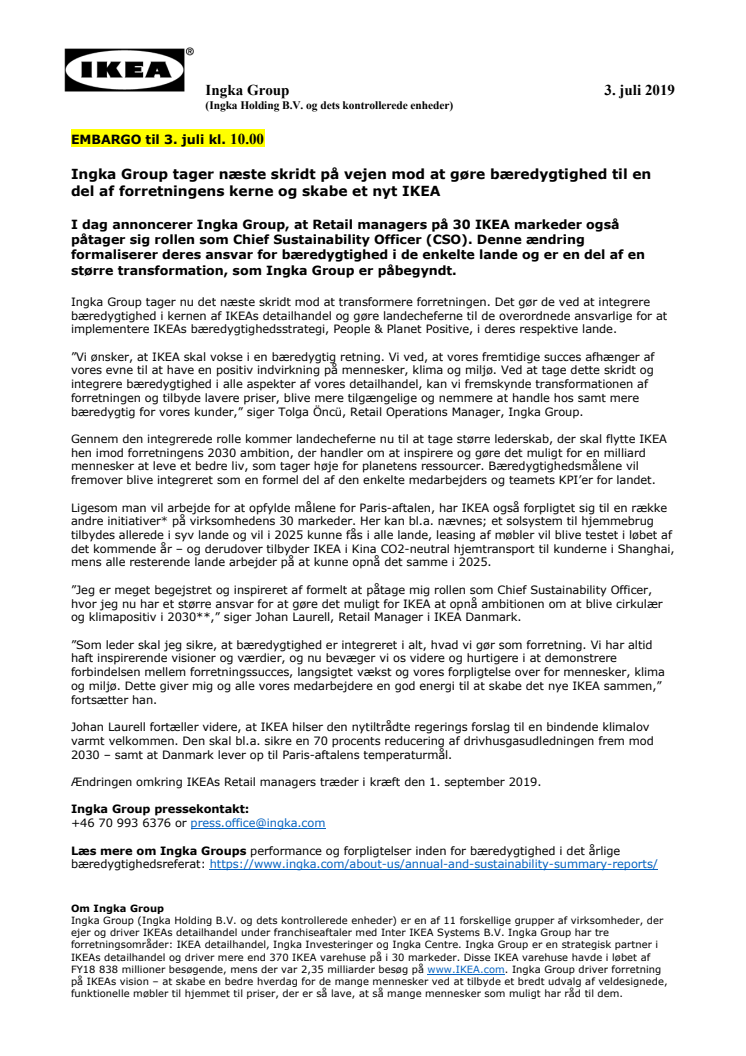 Ingka Group tager næste skridt på vejen mod at gøre bæredygtighed til en del af forretningens kerne og skabe et nyt IKEA