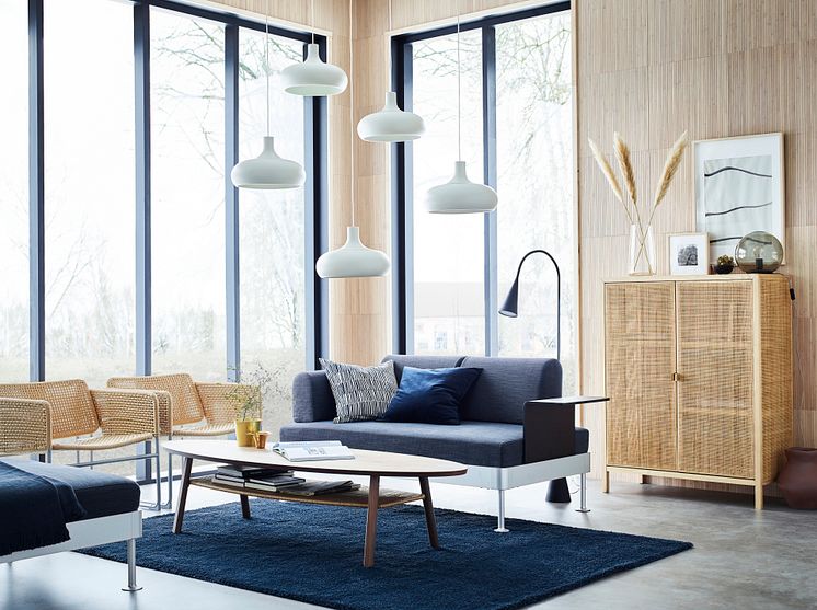 Stue med DELAKTIG sofa, STOCKHOLM 2017 skab og INDUSTRIELL stole