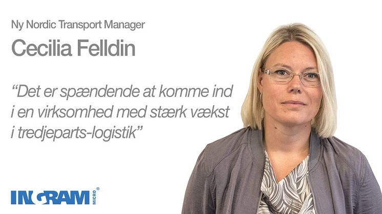 Umiddelbart efter ferien indtræder Cecilia Felldin hos Ingram Micro, som Nordisk Transport Manager. Hun kommer til at have sin faste plads på kontoret i Göteborg, men hun kommer også til at bruge meget tid på det nordiske lager i Borås samt det nye lager, som bliver bygget i Stockholm. Med hele Norden som sit ansvarsområde kommer vil hun også have en del rejsetid.