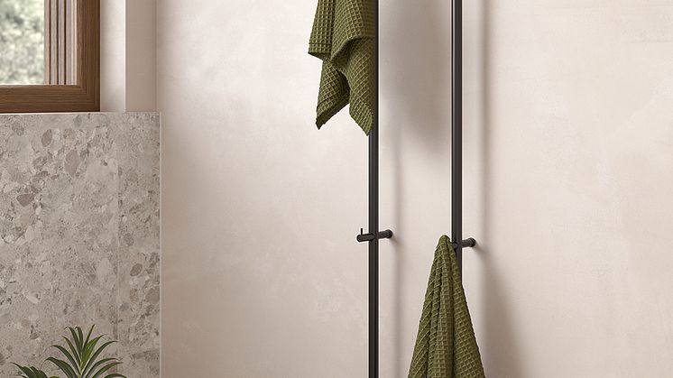 Håndklædetørreren LINE er stilfuld og pladsbesparende. Og energieffektivt holder håndklæderne dejligt varme. LINE trækker kun 29 W.