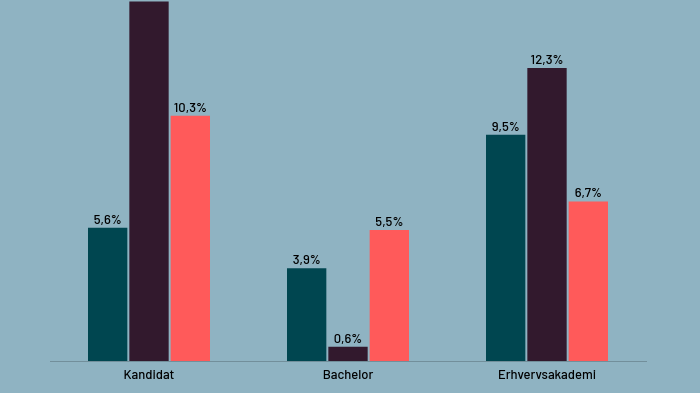 Generelt er der stor efterspørgsel efter kombinationsuddannelserne og de helt rene it-uddannelser som f.eks. datalogi, mens flere erhvervsakademiuddannelser har højere ledighed.