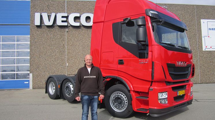 Vognmand Søren Buch Jensen, der er indehaver af Hornsyld Mini Trans overtager her sin nye Stralis AS440S46TXP 6x2x4 fra Iveco Vejle.
