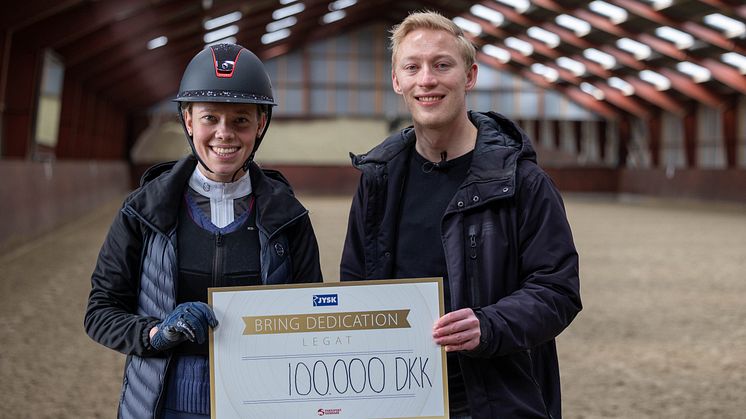 Paradressurrytter Katrine Kristensen (Roskilde) modtager JYSKs ”Bring Dedication”-legat på 100.000 kroner, der skal skabe de bedst mulige forberedelser frem mod hendes deltagelse i de Paralympiske Lege i Paris 2024.