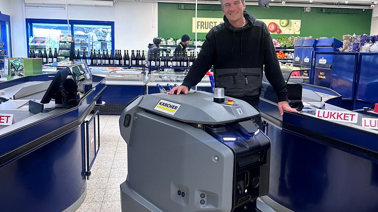 I Rema 1000 i Strøby Egede har robotten gjort rent, siden den blev taget i brug i februar. Købmanden, Thomas Kjærulff, er imponeret over teknologien og rengøringsresultaterne i butikken.
