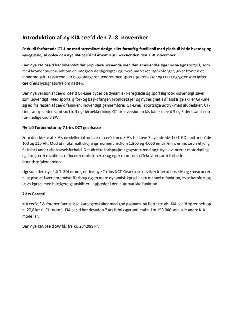 Er du til forførende GT-Line med strømlinet design eller fornuftig familiebil med plads til både hverdag og køreglæde, så oplev den nye KIA cee’d til Åbent Hus i weekenden den 7.-8. november.