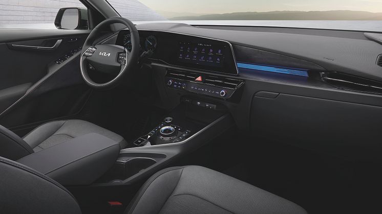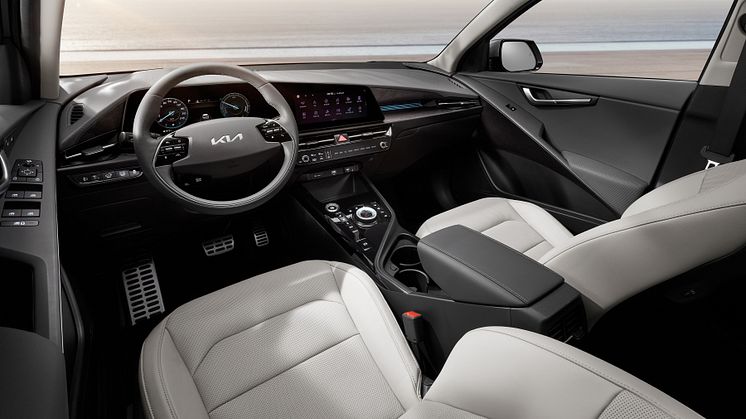 Genbrugsmaterialer med premiumeffekt fylder kabinen for at forbedre kabinepladsen og fremhæve Niros bæredygtige egenskaber. Instrumentpanelet og førerens betjeningselementer er minimalistiske og har rene linjer, der giver en intuitiv kundeoplevelse uden forstyrrende elementer. Et head-up-display-system (HUD) øger sikkerheden og komforten under kørslen, og en række nye sikkerhedssystemer giver den familievenlige crossover de nyeste innovationer inden for sikkerhed.