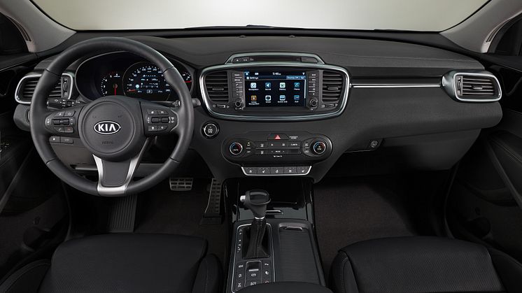 Kabinens design er moderne og bredt, hvilket giver interiøret en stabil, horisontal indretning og fremtoning. Bredden afspejles i den bredere instrumentenhed, interiørets dekorelementer og instrumentpanelets omsluttende form, der fortsætter ud i dørbeklædningerne. En større andel af blødere materialer og læder skaber en moderne og luksuriøs fornemmelse i kabinen og giver den nye Sorento en ægte atmosfære fra premiumklassen.