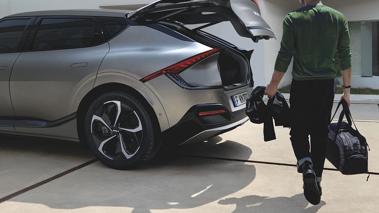 For at øge komforten er EV6 også udstyret med Kias elektriske bagklap. Når man nærmer sig bilen med EV6’s Smart Key i lommen, vil systemet genkende nøglen og åbne bagklappen automatisk og dermed give nem og komfortabel adgang til bagagerummet, hvilket er en kæmpe lettelse for dem, som har hænderne fulde.