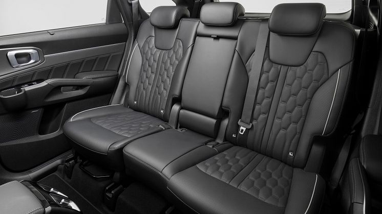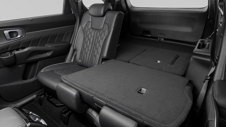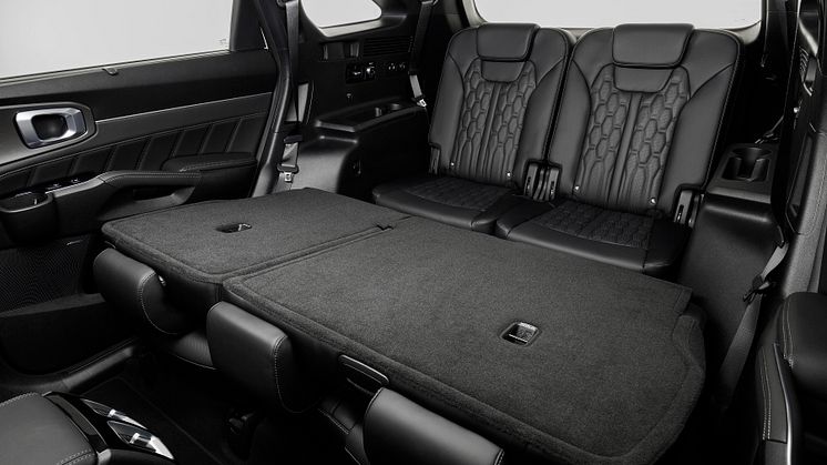 Batteripakken i Sorento Hybrid er placeret under kabinens bund. Derfor har SUV'en rigelig plads til op til syv personer plus en af de største bagagerumskapaciteter i klassen – op til 821 l (i 7-personers modeller) eller 910 l (i 5-personers modeller) afhængigt af bilens specifikationer. Det betyder, at fem personer kan sidde komfortabelt i bilen og medbringe betydelige mængder bagage. Når alle syv sæder er i brug i 7-personers modellerne, er bagagerumskapaciteten også øget med 32 % i forhold til forgængermodellen – til 187 l (VDA, i dieselmodeller og 179 l i hybridmodeller). Ved hjælp af betjeningselementer på siden af bagerummet kan sæderne i anden sæderække også klappes ned udefra med et tryk på en knap.