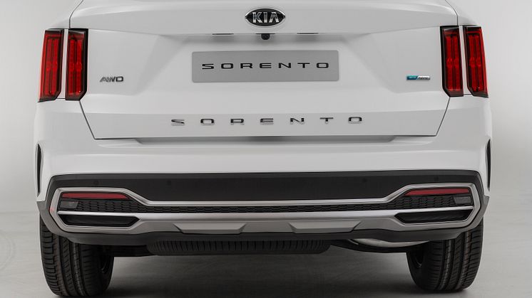 Med inspiration fra Telluride er Sorento udstyret med nye vertikale baglygter, der går ud over siden på karrosseriet. Skarpere linjer i karrosseriet spejler de lige linjer og det tekniske look fra bilens front, mens horisontale former får bilen til at fremstå bredere og mere imponerende på vejen. Listen på den sportslige nederste kofanger afspejler de dobbelte afgangsrørs look, og et bundskjold fremhæver ligesom på fronten bilens robuste SUV-æstetik. Fjerde generation af modellen følger i kølvandet på nye KIA modeller som Telluride og ProCeed med modelnavnet Sorento centralt placeret på bilens bagklap. En diskret integreret spoiler dækker over bagrudeviskeren, så designet bliver mere rent, og føreren får bedre udsyn bagud.